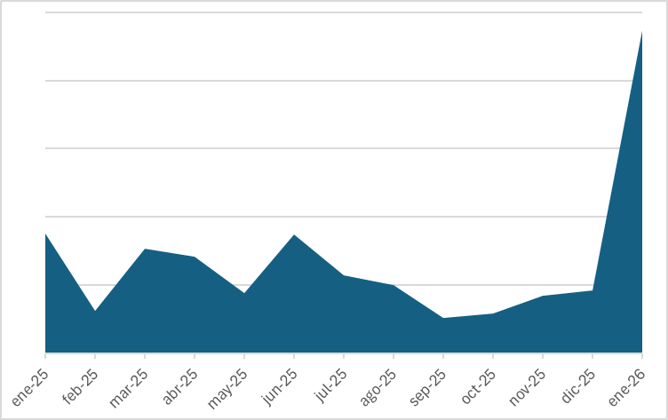 Las búsquedas de viajes a Groenlandia en Trabber han experimentado un fuerte crecimiento a comienzos de 2026. En comparación con los niveles habituales de 2025, el interés registrado en enero supone un aumento aproximado del 170 % interanual, marcando un claro punto de inflexión.